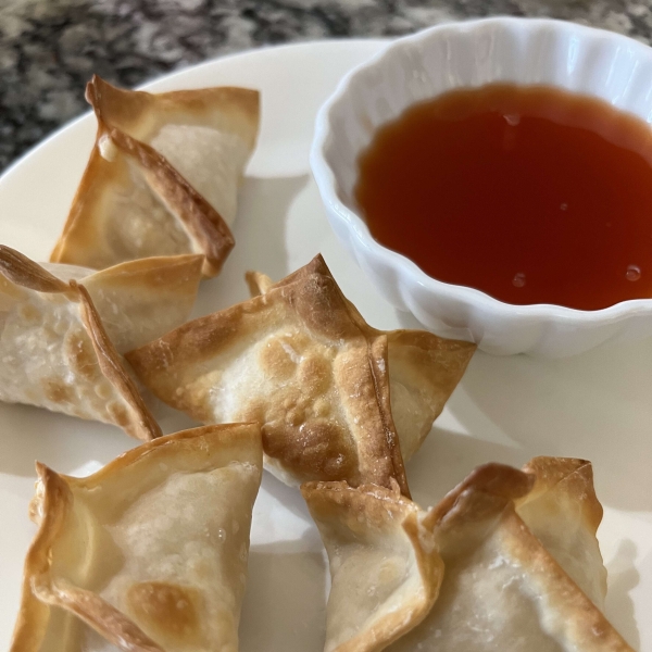 This air fryer recipe for crab Rangoon produces super crispy wonton puffs with warm and fluffy centers filled with cream cheese and tender crab meat.