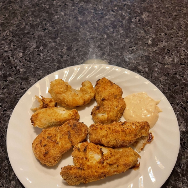 Homemade fish sticks that are perfectly crisp on the outside and tender and flaky on the inside are easily made from scratch in the air fryer. Dip in tarter or cocktail sauce.