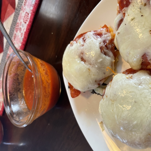 Crispy on the outside, tender on the inside, and gooey melty cheese on top. If Italian herb polenta is not available, sprinkle Italian seasoning over the rounds after brushing with EVOO. I like these as they are but feel free to dip in pizza or marinara sauce for that extra pizza kick. Garnish with parsley if desired.