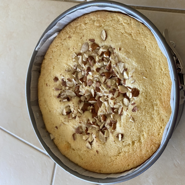 Bake on the center rake of the preheated oven until edges of the cake are lightly browned, about 50 minutes. Cake will still be a little wobbly in the middle.