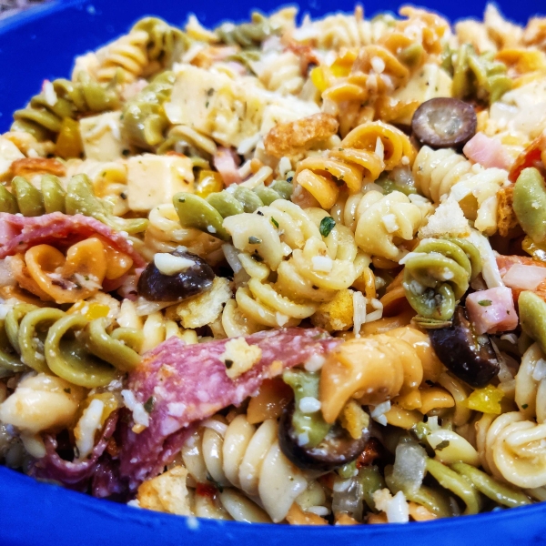 This antipasto pasta salad is perfect for parties, potlucks, and picnics! A delicious combo of pasta, meat, and cheese, it's hearty and so easy to make.