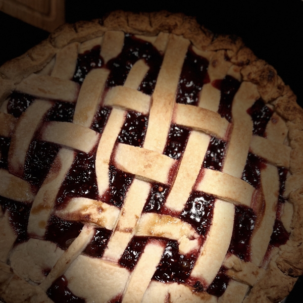 Blackberries and tart green apples fill a lattice-crust pie that's baked with a poured-on sauce for a caramelized crust and fruity blackberry flavor.