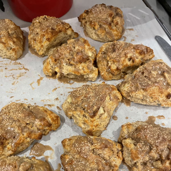 Buttermilk brings a bit of tang and tenderness to these apple scones with its sweet-spicy cinnamon flavor. Expect a crunchy golden exterior with crumbly edges and a soft center.
