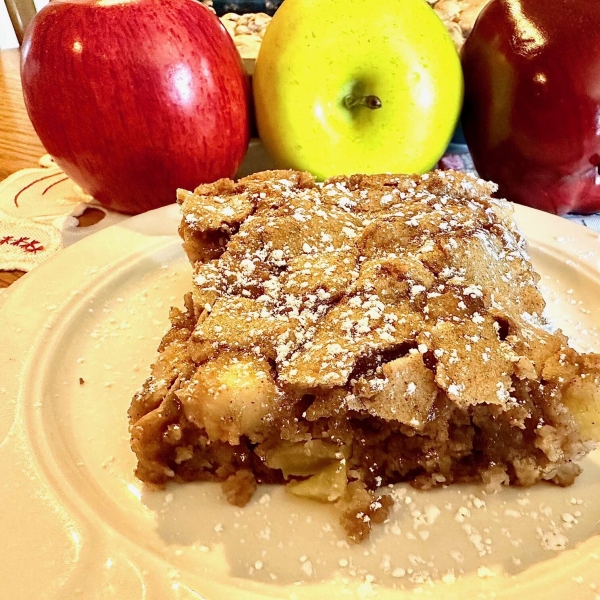 This apple cake recipe is simple to make with peeled, diced apples for a moist, cinnamon-flavored fall dessert that is great served warm or cold.