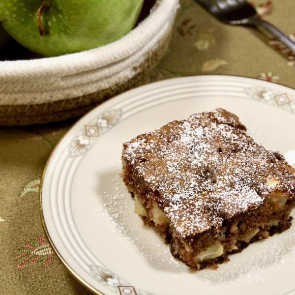This moist apple cake is easy to make and loaded with chunks of sweet apple and applesauce for the perfect fall dessert that's delicious warm or cold.