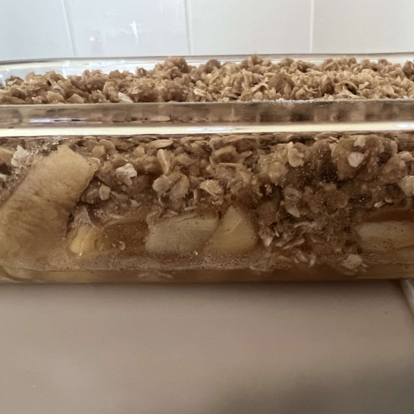 Bake in the preheated oven until top is golden brown and apples are bubbling around the edges, about 45 minutes.
