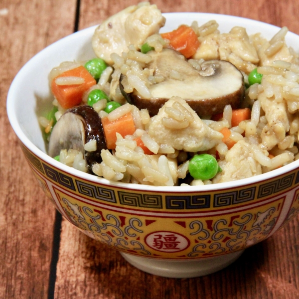 A simple way to make fried rice that is better than in some Chinese restaurants! Boneless chicken breasts are stir fried with white rice, scrambled eggs, mushrooms, green onions and soy sauce.