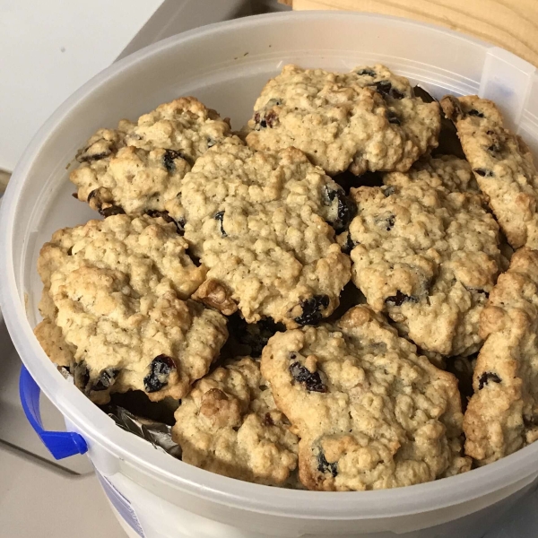 Walnuts and cranberries and the flavors of orange and pumpkin pie spice add a delightful twist to these oatmeal-raisin cookies.