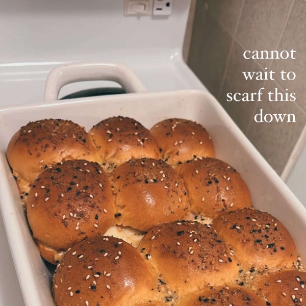 Bake in the preheated oven until the rolls are lightly browned and the cheese has melted, about 20 minutes. Slice into individual rolls through the ham and cheese layers to serve.