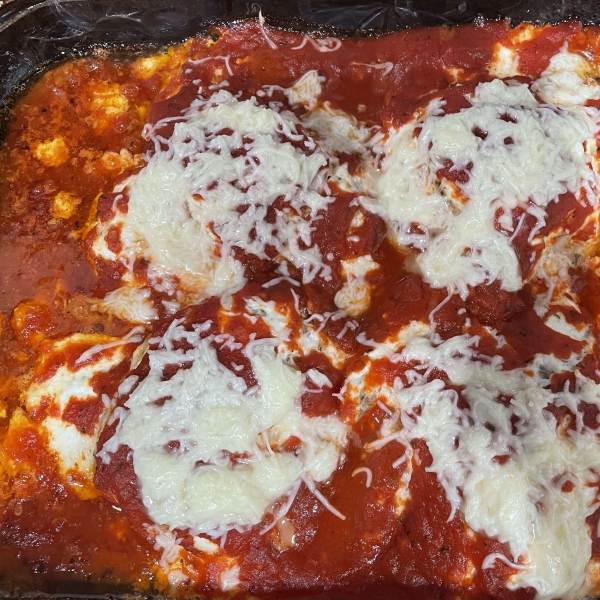 These Italian chicken thighs are baked with ricotta, Parmesan, mozzarella, and marinara sauce for a tasty weeknight meal perfect served with pasta.