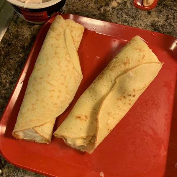 Heat a lightly oiled griddle or frying pan over medium high heat. Pour or scoop the batter onto the griddle, using approximately 1/4 cup for each crepe. Tilt the pan with a circular motion so that the batter coats the surface evenly.