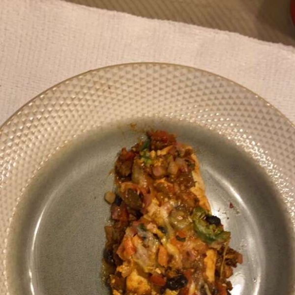 Spoon any remaining meat sauce over rolled tortillas. Scatter any remaining black beans and black olives over the top. Sprinkle with remaining 1/4 cup Cheddar cheese.