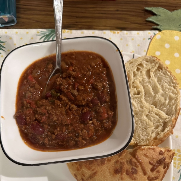 A spicy ground beef chili with an assortment of sweet and hot peppers that's easy to make on your stove or in your slow cooker for a crowd-pleasing meal.