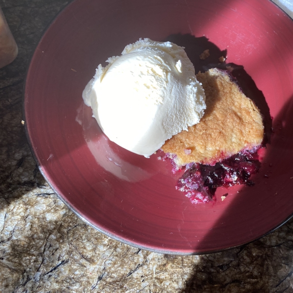 This blueberry cobbler is an excellent light dessert that isn't too sweet! This recipe works great with all types of fruit. Serve with whipped cream or vanilla ice cream.
