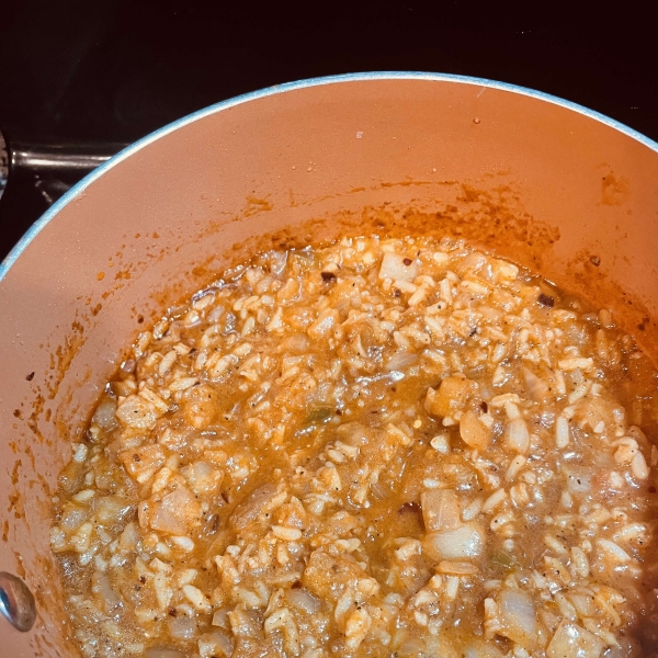 Add rice; cook and stir until rice begins to turn golden brown. Stir in chicken broth and picante sauce. Reduce heat, cover, and simmer until liquid has been absorbed, about 15 to 20 minutes.