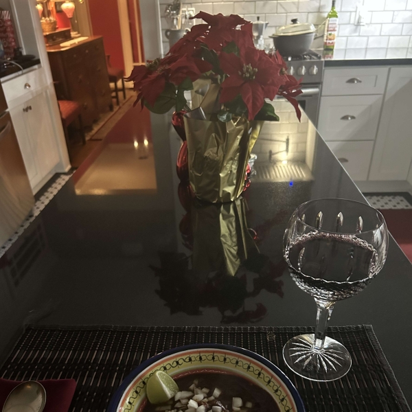 Meanwhile, heat 2 tablespoons of the oil in a large pot or Dutch oven over medium-high. Add 3 of the onion quarters, reserving the last quarter for later use, and garlic to pan. Cook, flipping once, until charred, about 6 minutes.
