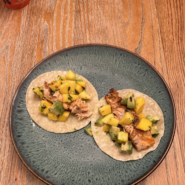 Blackened Salmon Tacos with Chunky Mango Avocado Salsa
