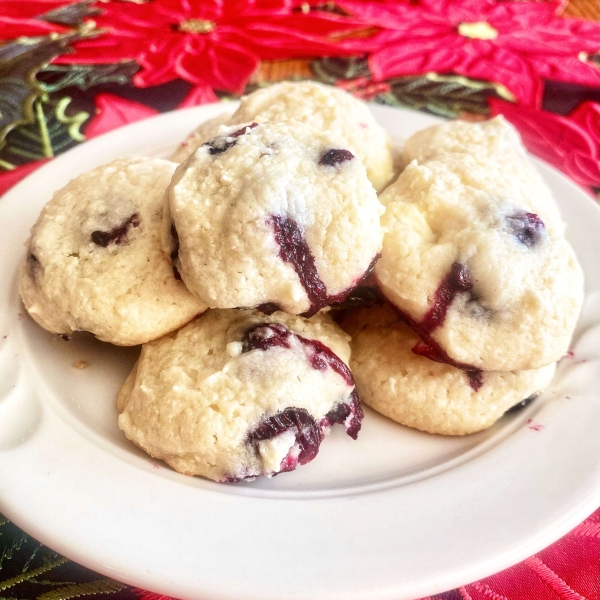 These wonderfully cheesecake-flavored cookies with cream cheese, sour cream, and blueberries are perfectly creamy, sweet, and salty with a tart berry flavor.