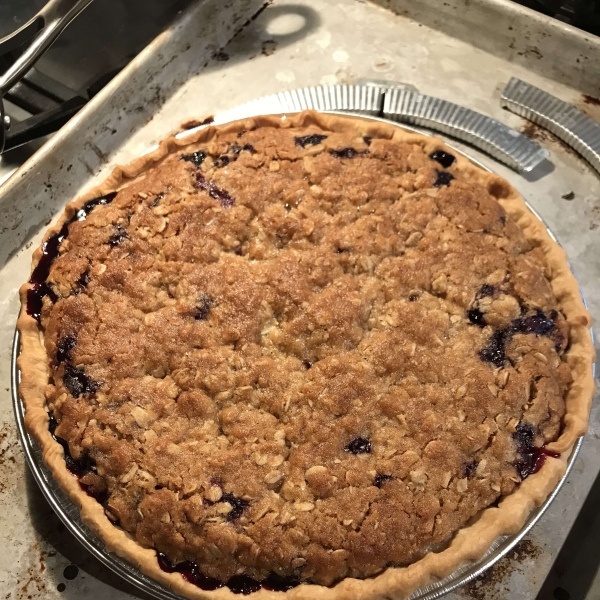 Make the topping: Combine oats, brown sugar, flour, and cinnamon in a medium bowl. Cut in cold butter with two knives or a pastry blender until the mixture resembles coarse crumbs. Spread topping evenly over pie filling.