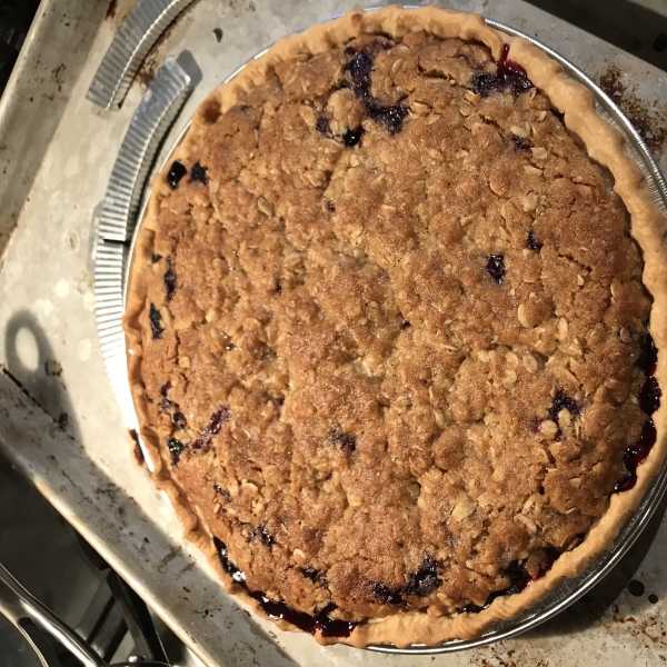 Make the topping: Combine oats, brown sugar, flour, and cinnamon in a medium bowl. Cut in cold butter with 2 knives or pastry blender until the mixture resembles coarse crumbs. Spread the topping evenly over the pie filling.