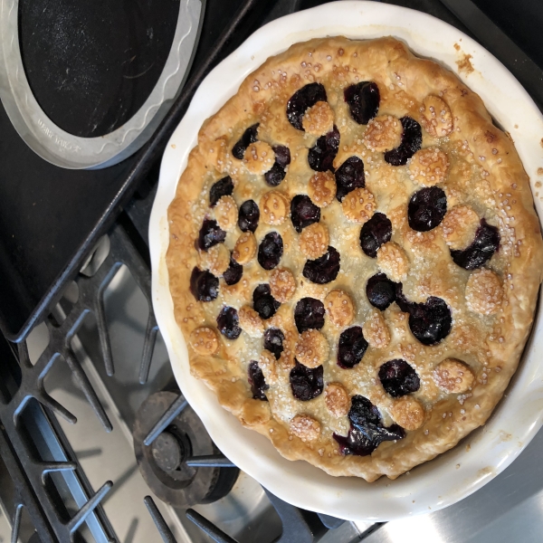 Blueberry pie with a gorgeous lattice top is hard to beat! This easy recipe is ideal with fresh berries but mighty fine with frozen ones too.