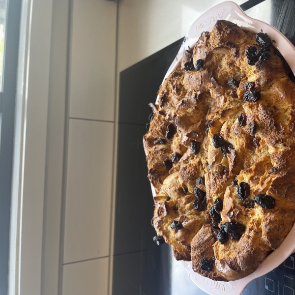 My family LOVES bread pudding, and this recipe is one that I have fine tuned to their taste. I have to double this recipe, and bake it in a 9x13 inch pan for my family! It's great for breakfast or dessert and is delicious with milk poured on top! Enjoy!