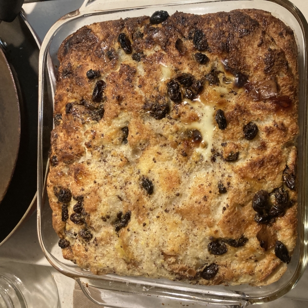 My family LOVES bread pudding, and this recipe is one that I have fine tuned to their taste. I have to double this recipe, and bake it in a 9x13 inch pan for my family! It's great for breakfast or dessert and is delicious with milk poured on top! Enjoy!