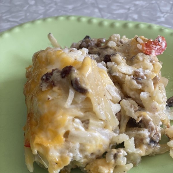 This casserole with hash browns is my favorite breakfast recipe. I have used it for Christmas breakfast and have even brought it into work for a special treat. Family and co-workers love it and ask me for the recipe. Even though it has to set overnight, it is well worth the prep and wait!