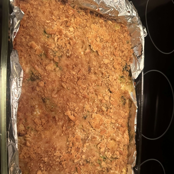 Bake in the preheated oven until casserole is bubbly and the top is golden brown, about 15 minutes.