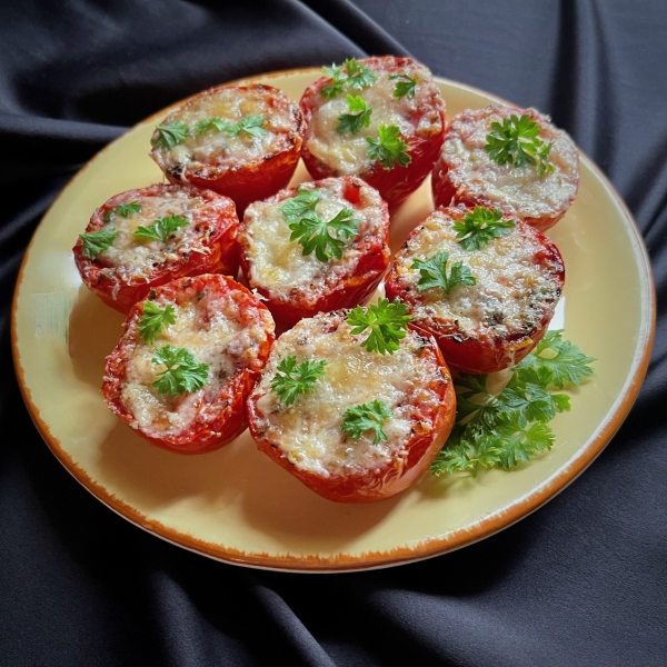Tomatoes make a lovely side for almost any protein. This easy recipe will work for Roma or Campari tomatoes. A little seasoning and grated Parmesan will complete this quick and easy dish that is on the table in minutes!