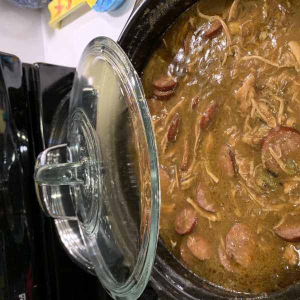 This chicken and sausage gumbo is made with a seasoned roux, a classic from the bayous of south Louisiana. I revised the recipe after many, many trials. Serve it hot over cooked rice or with potato salad.