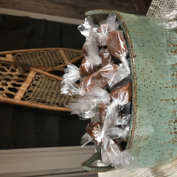 Satiny-smooth, homemade caramels are a snap with this easy recipe! Just be sure you have a candy thermometer on hand as you simmer sugar, corn syrup, evaporated milk, whipping cream and butter. Cool in a pan, then cut into squares.