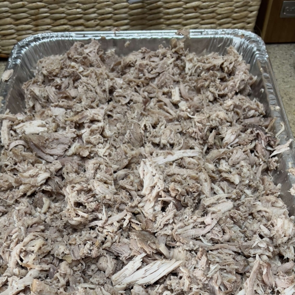 Remove bones and pull/shred meat before serving. All or some of the rendered fat can be mixed into the meat.