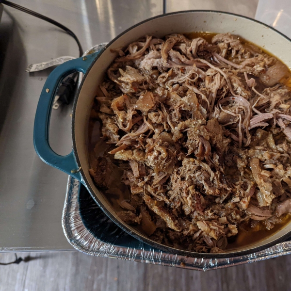 Chef John's Carolina-style "whole hog" barbecue pulled pork is a simplified version that requires various cuts of meat and a Dutch oven to feed a crowd.