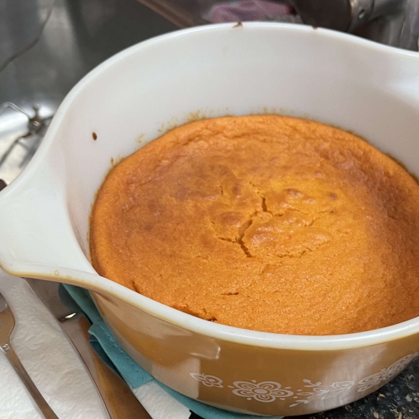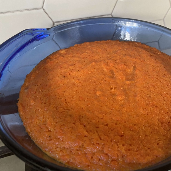 Sift flour, baking powder, salt, and sugar together. Stir into carrot mixture and blend until smooth. Transfer to the prepared casserole dish.