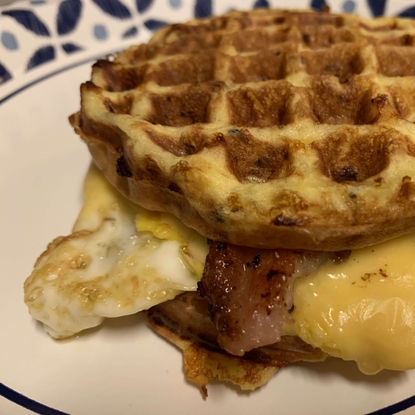 This chaffle recipe uses almond flour, an egg, and mozzarella to make 2 cheesy waffles that are perfect for a low-carb breakfast or sandwich!