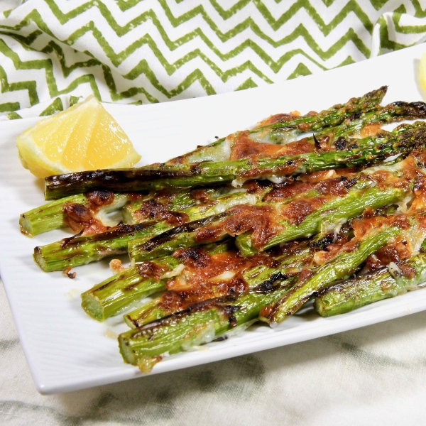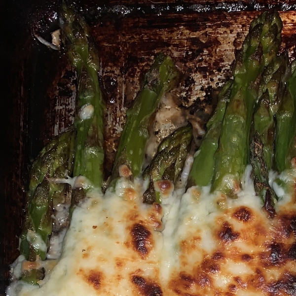 Top asparagus with mozzarella cheese. Return to the oven and broil until cheese melts and becomes golden, 4 to 5 minutes.