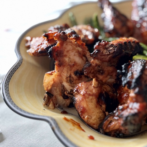 Chef John's grilled barbecue chicken is perfect every time. Say goodbye to a burned BBQ coating and hello to a thick, sticky glaze that permeates the meat.