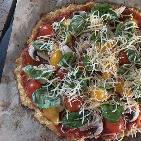 Stir cauliflower, goat cheese, Parmigiano-Reggiano cheese, egg, and cayenne pepper together in a bowl to form a soft dough. Gather dough into a ball and place in the center of the prepared baking sheet. Press dough into circle about 1/4-inch thick.n