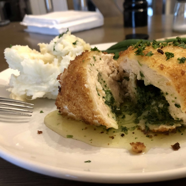 Delicious chicken Kiev with homemade garlic and parsley butter, perfectly cooked until golden and crisp on the outside and super succulent inside.
