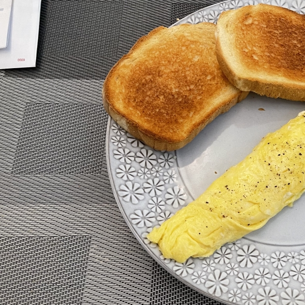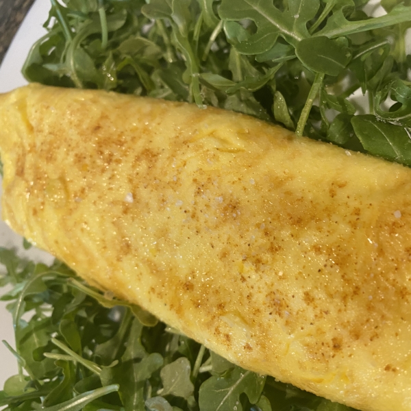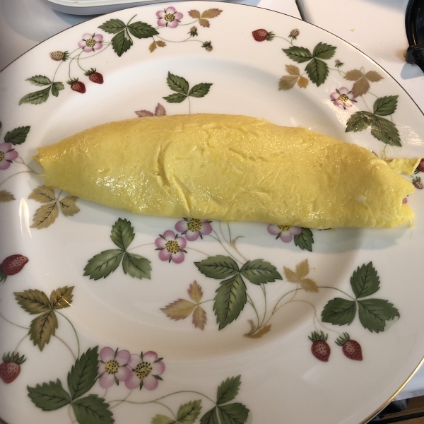 A true French omelette, or omelet as we Americans call it, is just eggs and butter, no filling. The egg is folded for a soft, tender texture. It's 10% ingredients and 90% technique, so it does take a bit of practice to perfect.