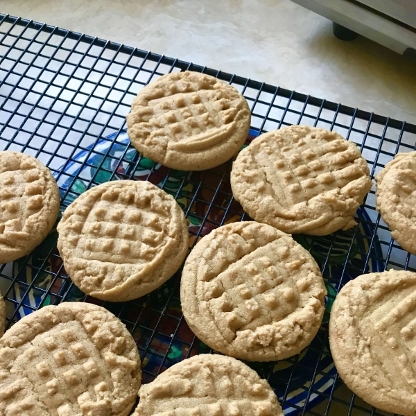 Portion out cookie dough in equal-sized balls on a baking sheet covered with a silicone baking mat. Use damp hands to roll dough into smooth balls. Stamp each ball with a fork in a criss-cross pattern.