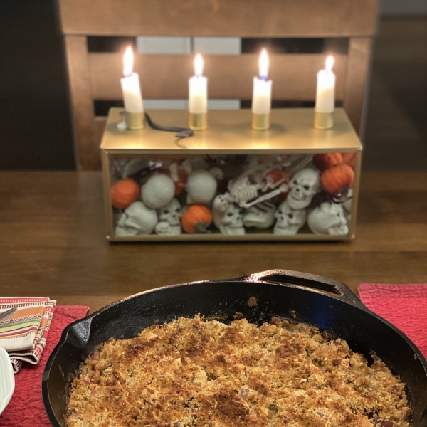 Remove the pan and push bread crumbs down into the cassoulet. Top with remaining bread crumb mixture. Return to oven and continue broiling 5 more minutes, until browned.