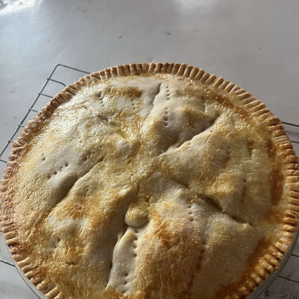 Place chicken and vegetables in the bottom pie crust. Pour hot liquid mixture over top. Cover with top crust, seal the edges, and cut away any excess dough. Make several small slits in the top crust to allow steam to escape.