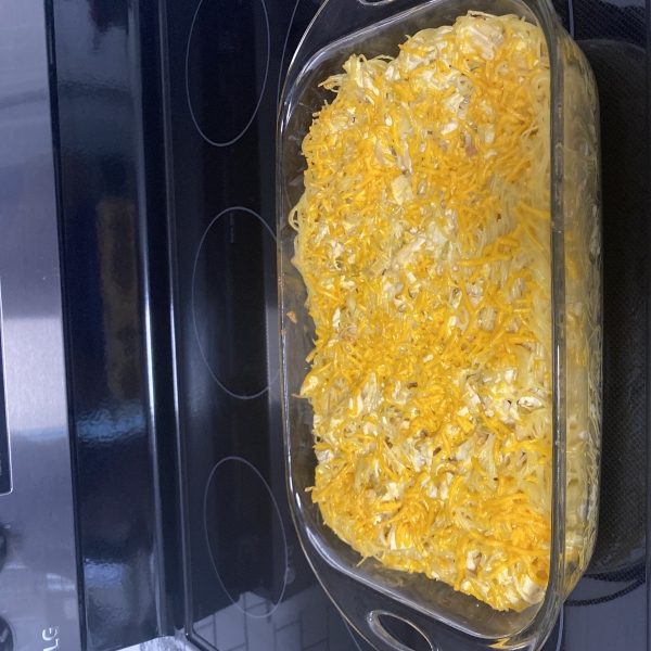 Pour mixture into a 9x13 inch baking dish. Sprinkle reserved shredded cheese on top and bake in the preheated oven for 25 to 35 minutes or until bubbly.