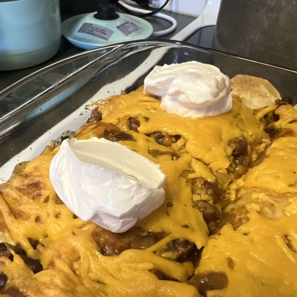 Beef franks, chili and beans, tortillas and Cheddar cheese form the layers of this deceptively simple and unnusual casserole.