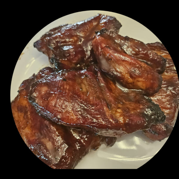 Transfer cooled sauce to a large mixing bowl. Stir in red food coloring. Place pork sections into sauce and coat each piece. Cover with plastic wrap and refrigerate 4 to 12 hours.