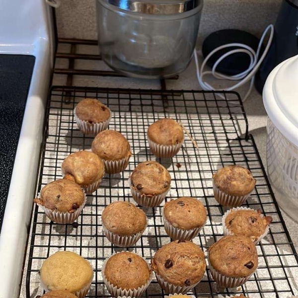 These mini muffins with mini chocolate chips are super easy to whip up and share in less than an hour for a sweet treat the whole family can enjoy!