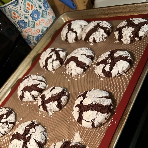 Brownie-like chocolate crinkle cookies coated in confectioners' sugar are perfect for holidays, parties, or afternoon treats!