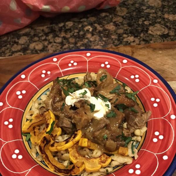 Chef John cooks chunks of pork shoulder low and slow with an apple cider sauce until the pork is perfectly tender and sauce has thickened.